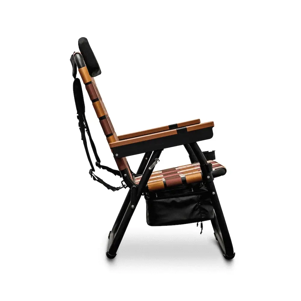 Framed in PARKIT’s Eclipse reclining chair design and built with stainless steel and aerospace-grade aluminum hardware, Outrider invites you to settle in and take in the open country. With the push of a button, shift effortlessly between three recline positions: Kickback, Relax, and Enjoy, letting you lean back as the fire burns low and the stars take over the sky. An integrated cooler keeps drinks cold and within reach, while ergonomic overlander carry straps make transport easy from the truck bed to the campsite.